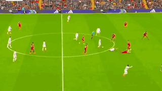 第18分鐘,薩拉赫和伊薩克打出精彩配合,關鍵時刻,盧克肖倒地放鏟,化解險情。