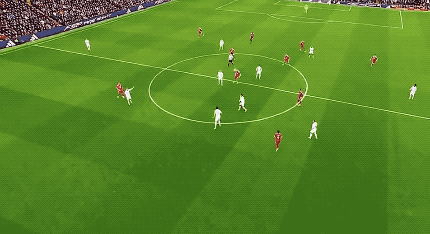 上半場結束,這是兩隊在安菲爾德的第100次交手,曼聯暫時1-0領先。