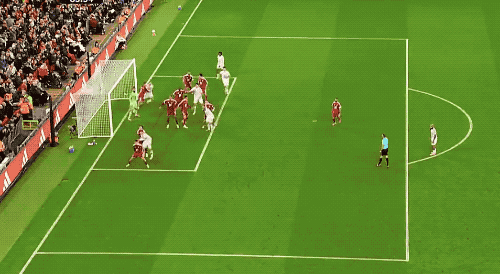 第13分鐘,利物浦形成瞭首次射門,薩拉赫任意球傳中,范戴克頭球攻門頂偏。