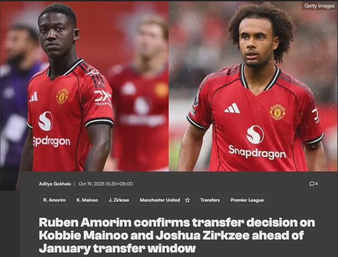 有傳聞表示齊爾克澤和梅努將在冬天離開曼聯,不過阿莫林在賽前對這樣的傳聞潑瞭冷水。