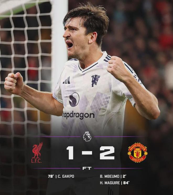 曼聯客場2-1戰勝利物浦,這是曼聯自2016年以來第一次在安菲爾德擊敗利物浦!